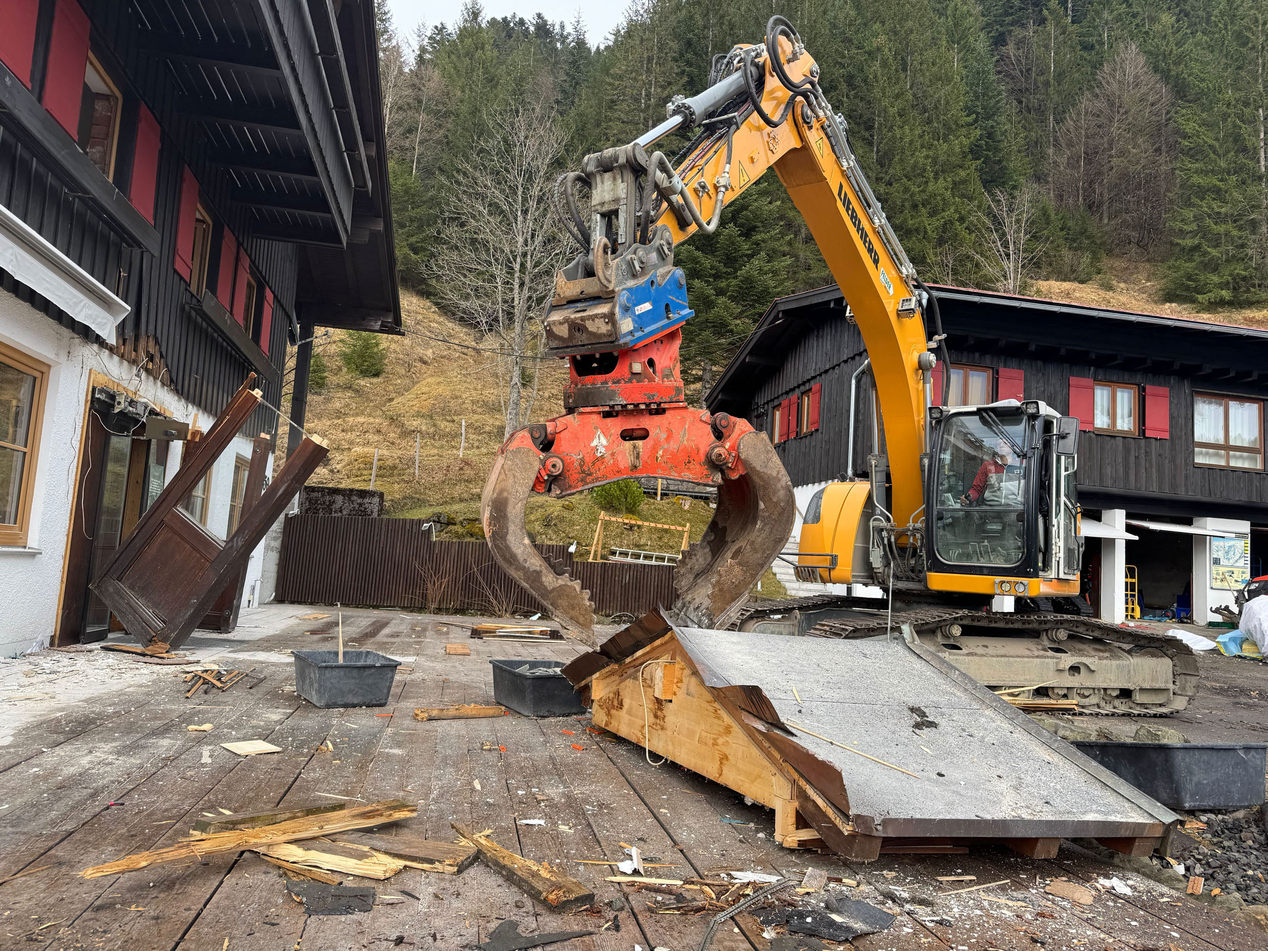 Drinnen hing noch der Geruch von altem Holz und Kaminrauch in der Luft - und draußen stapelten sich bereits die Bretter, die über viele Jahrzehnte hinweg die Geschichte der Berghütte miterlebt hatten. Ein seltsames Gefühl, aber auch ein schönes. Und der Startschuss für Wald & Wiesn.