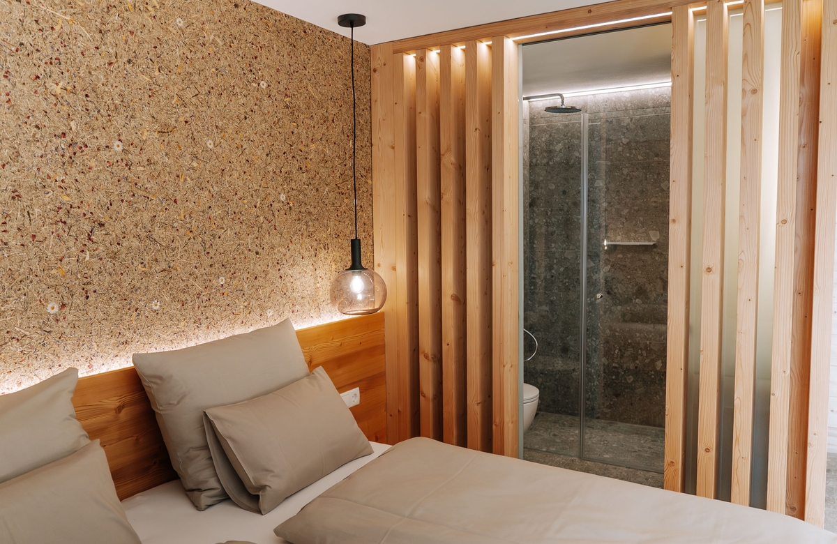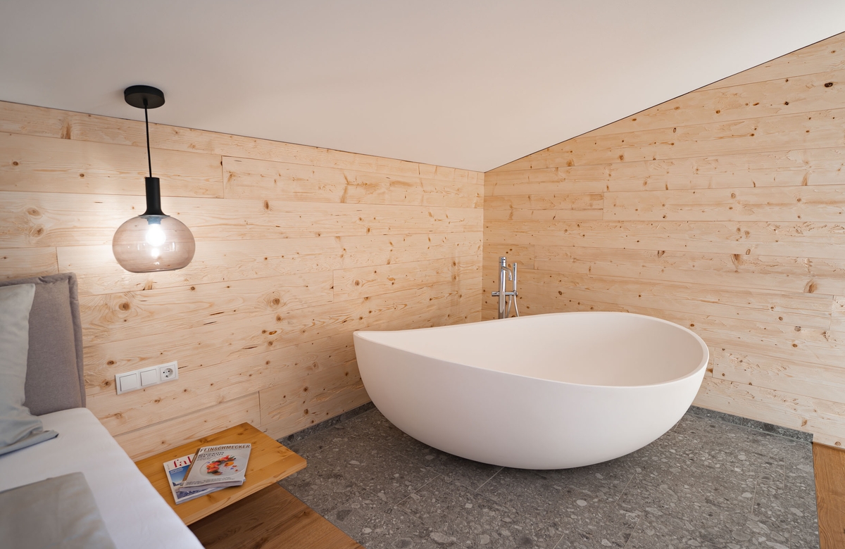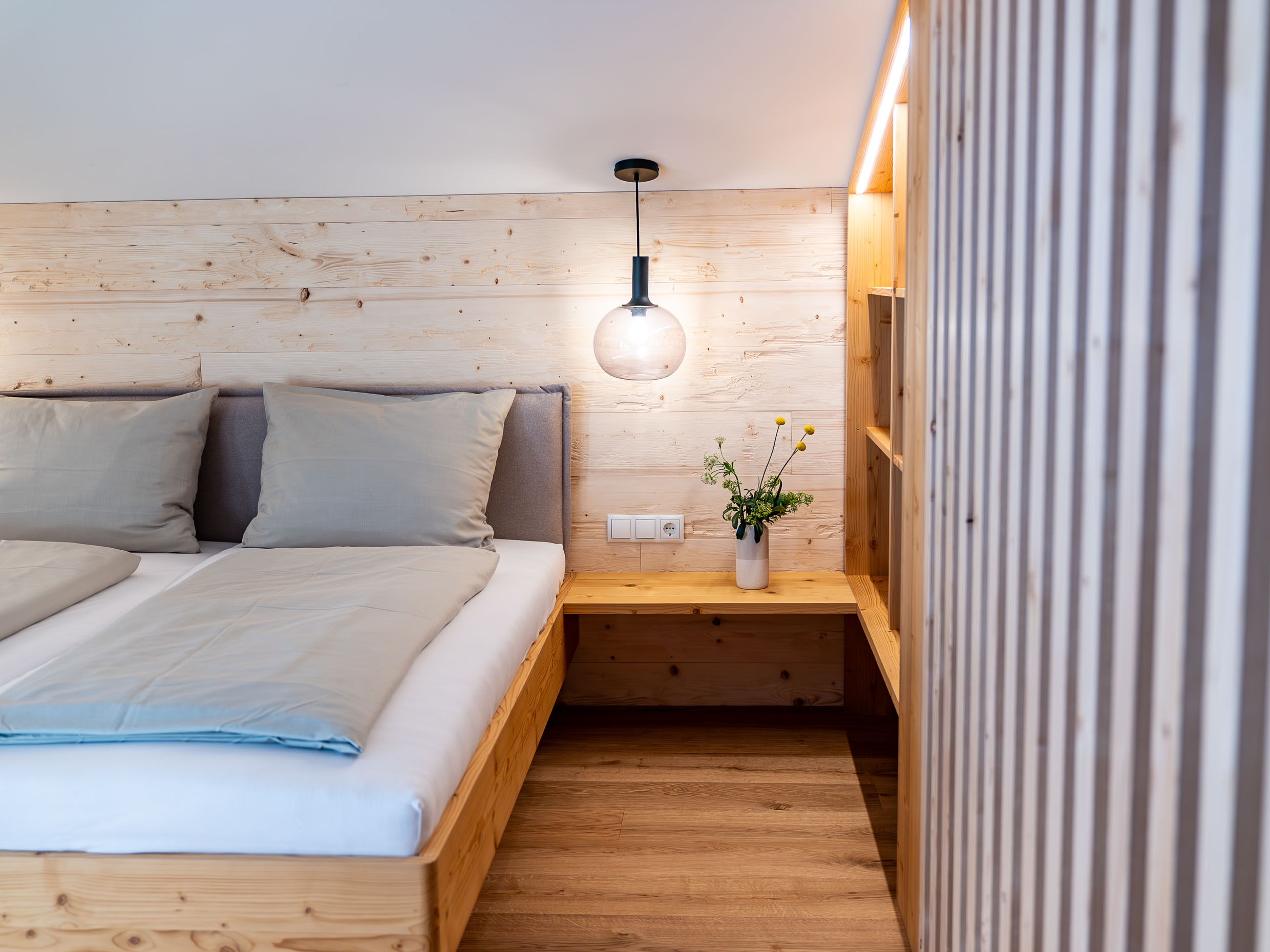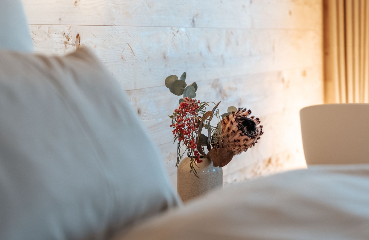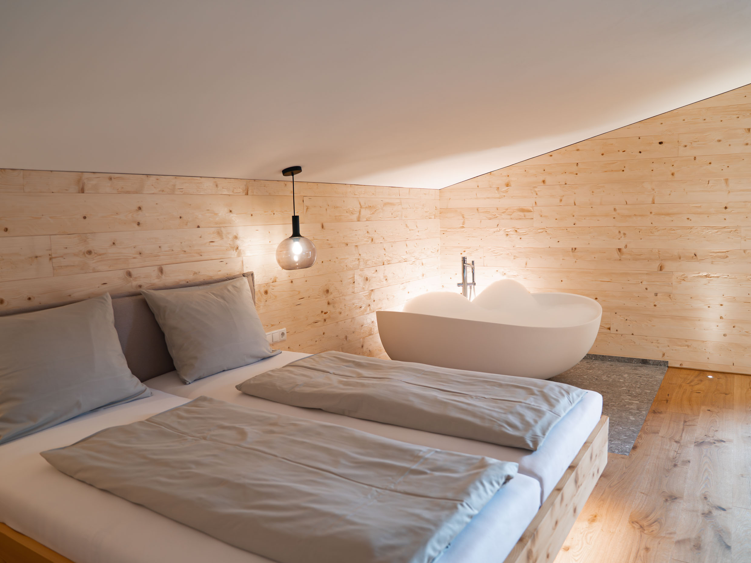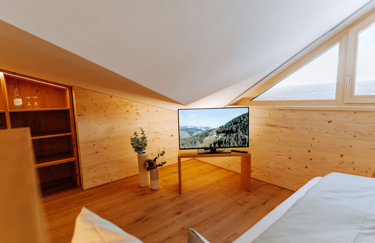 Gestalterisch greifen die Zimmer den klassischen Hüttenstil auf: viel Holz, warme Materialien und eine behagliche Atmosphäre, die das alpine Lebensgefühl von Wald & Wiesn widerspiegelt. Die Hütte ist damit der perfekte Ort für alle, die gerne mittendrin wohnen und das Herz des Hauses bewusst erleben möchten.