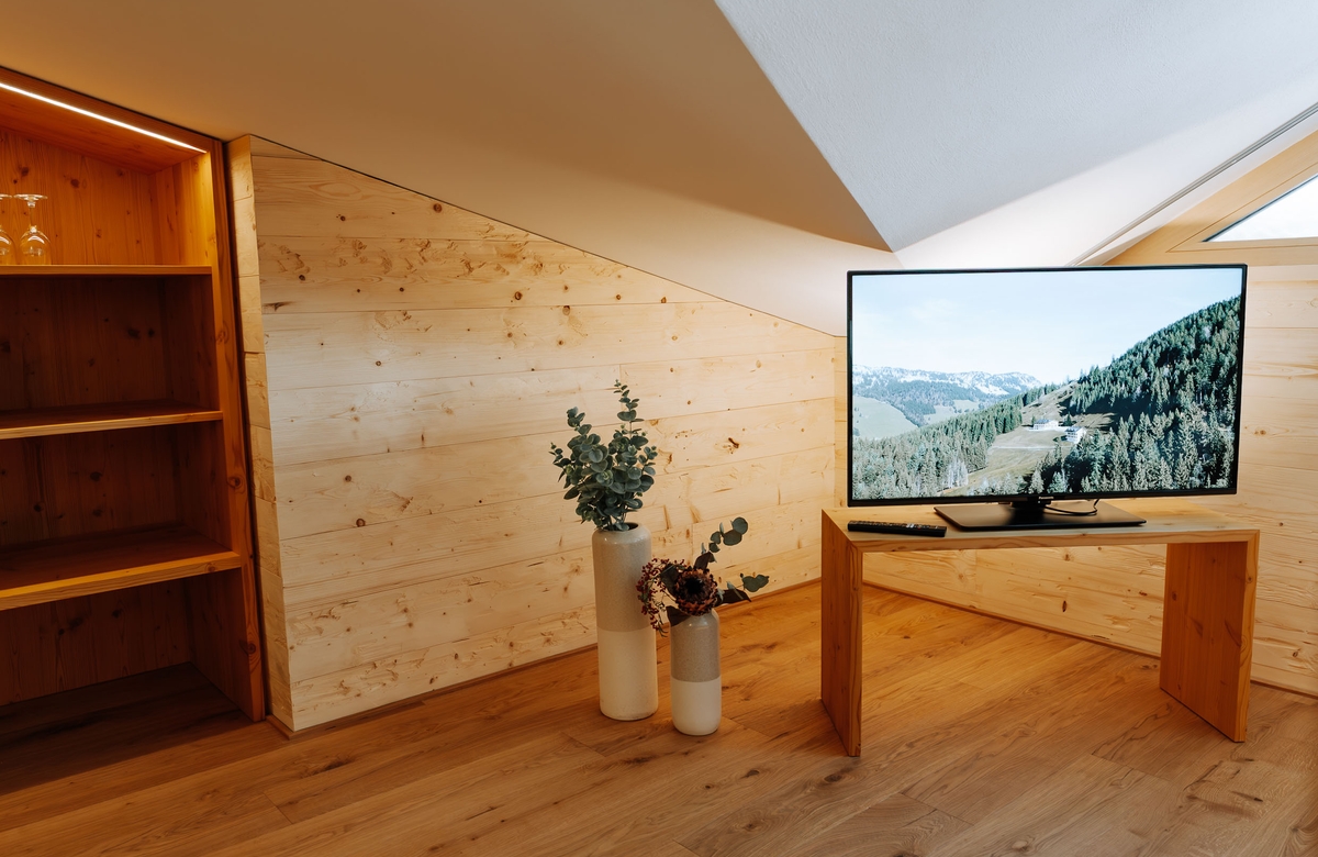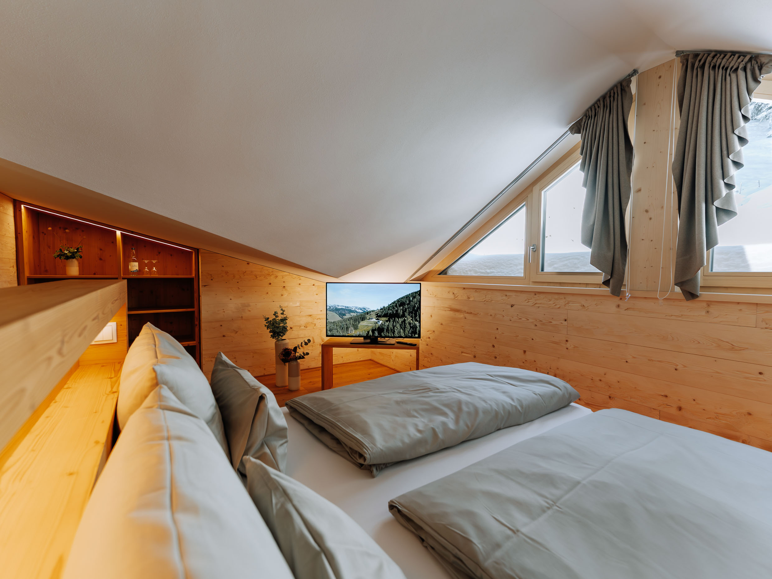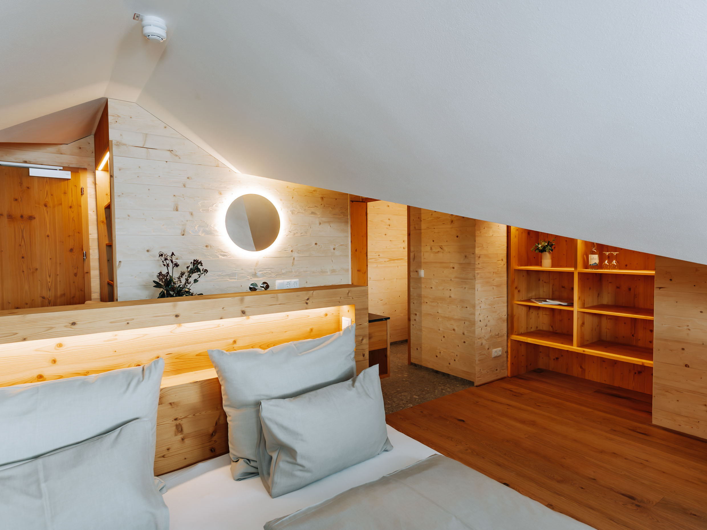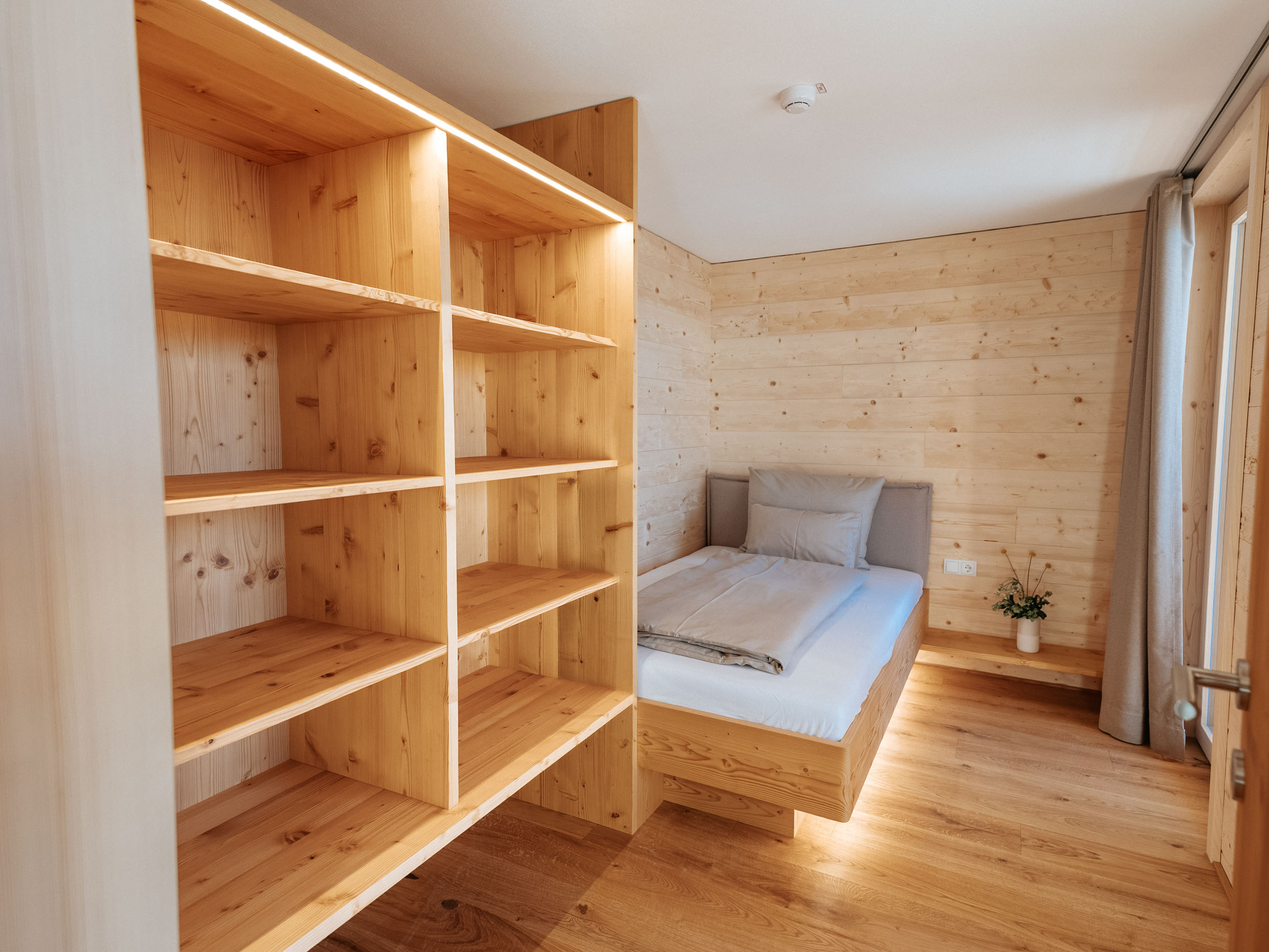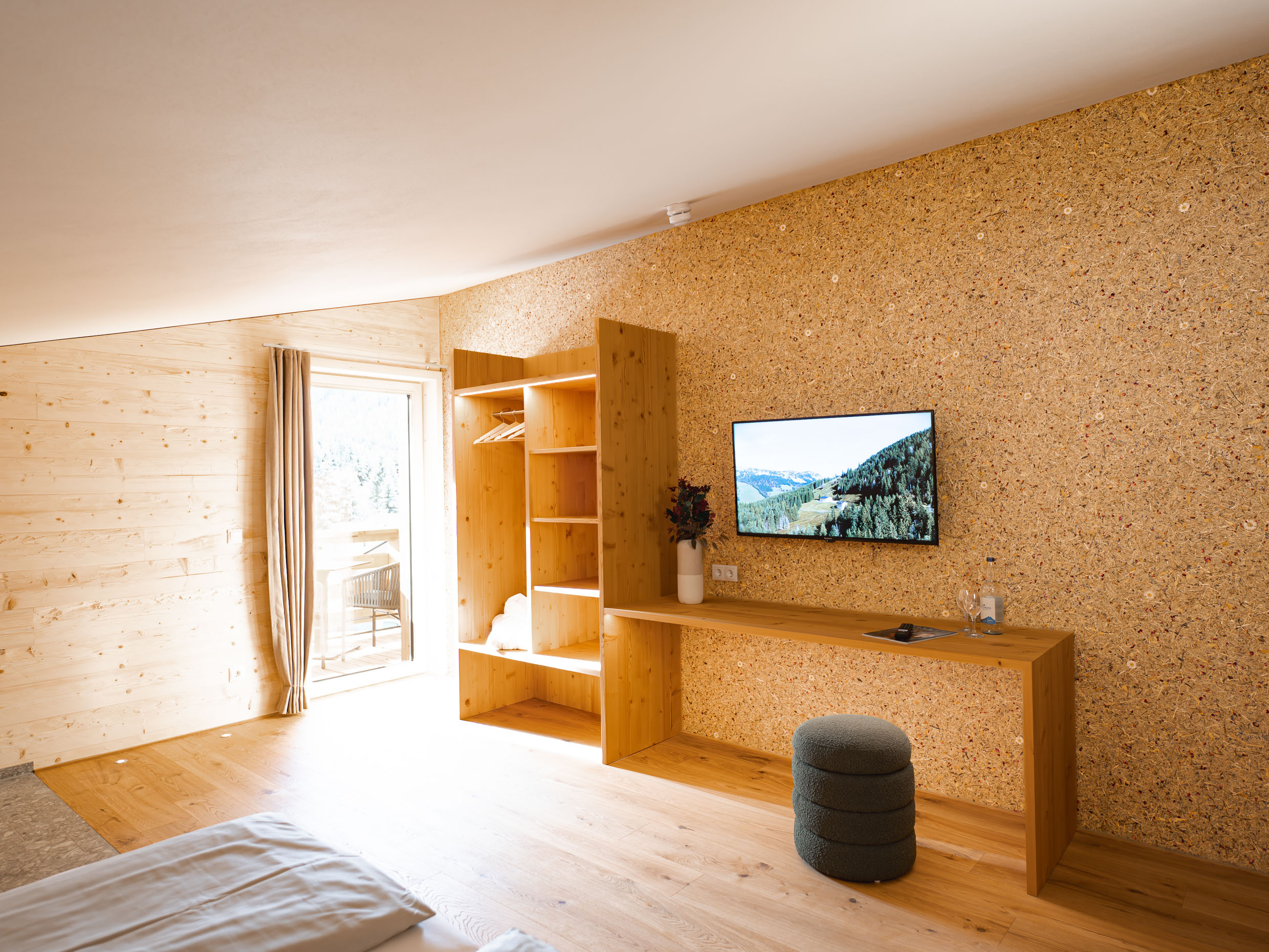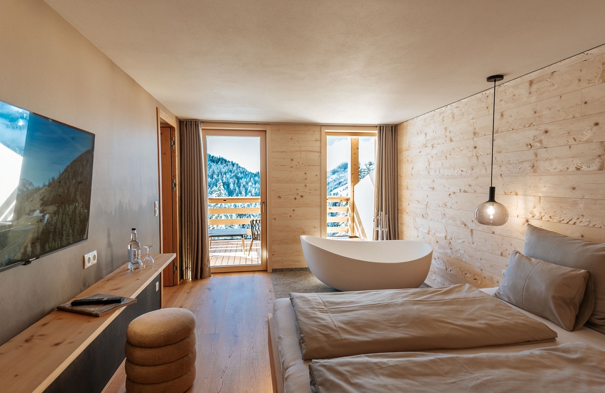 Gestalterisch greifen die Zimmer den klassischen Hüttenstil auf: viel Holz, warme Materialien und eine behagliche Atmosphäre, die das alpine Lebensgefühl von Wald & Wiesn widerspiegelt. Die Hütte ist damit der perfekte Ort für alle, die gerne mittendrin wohnen und das Herz des Hauses bewusst erleben möchten.