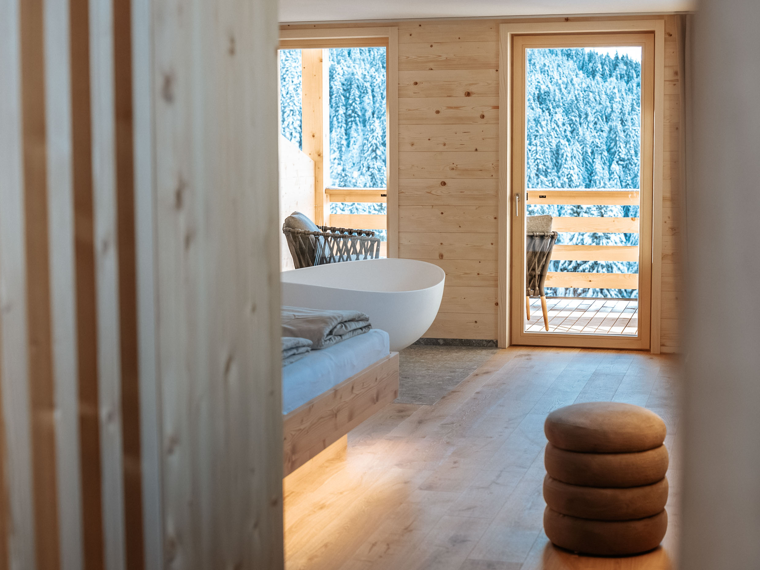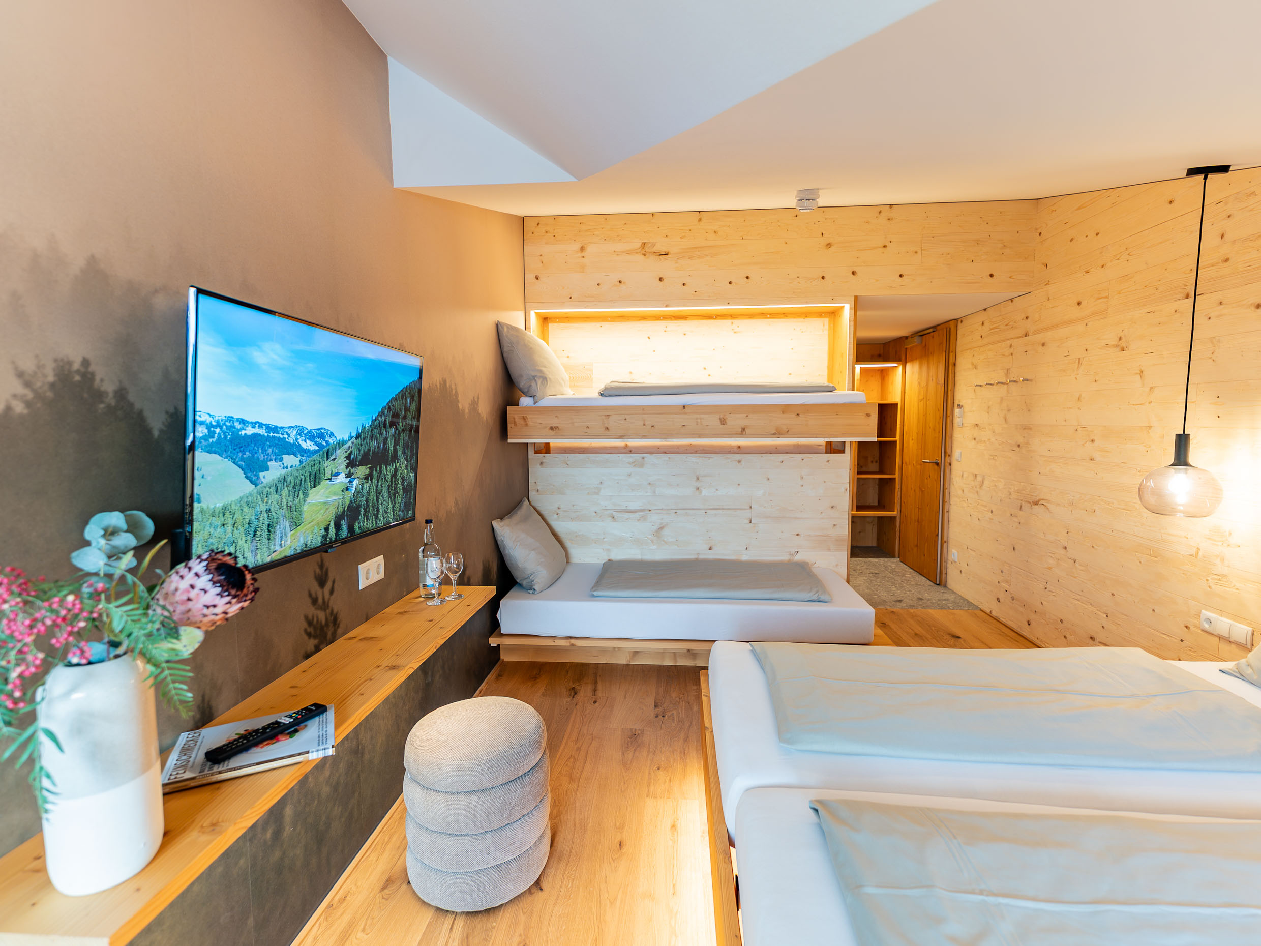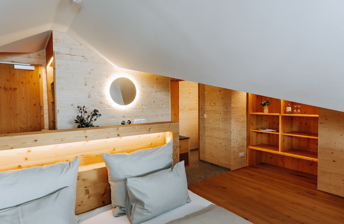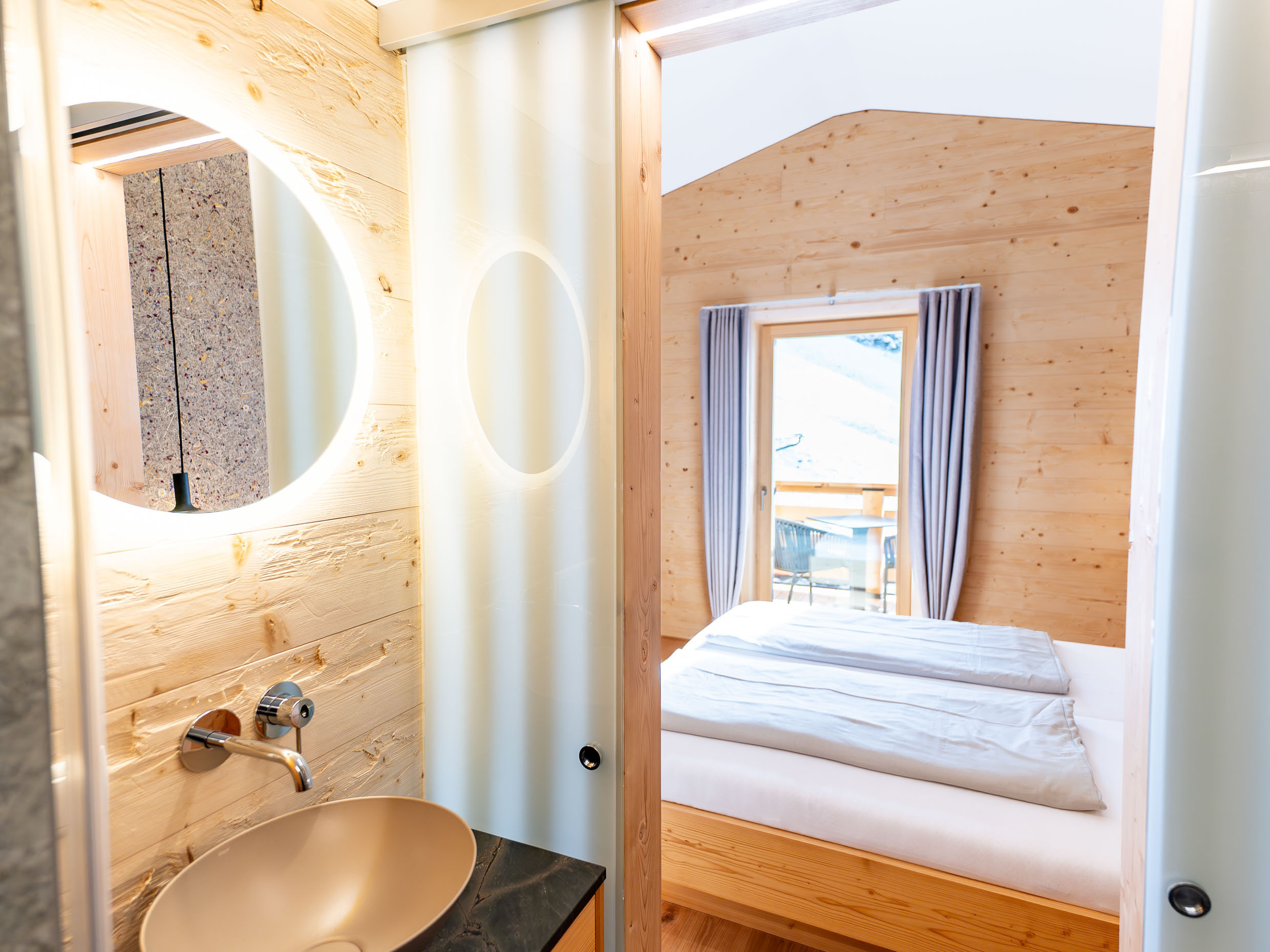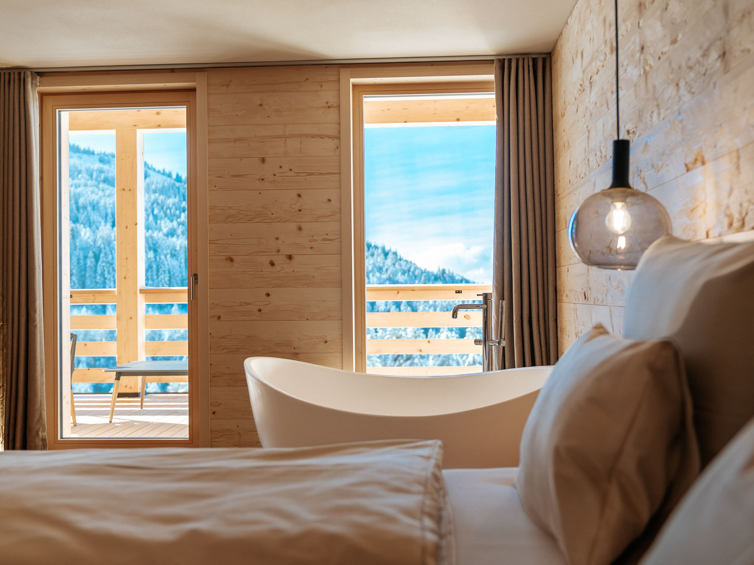 Gestalterisch greifen die Zimmer den klassischen Hüttenstil auf: viel Holz, warme Materialien und eine behagliche Atmosphäre, die das alpine Lebensgefühl von Wald & Wiesn widerspiegelt. Die Hütte ist damit der perfekte Ort für alle, die gerne mittendrin wohnen und das Herz des Hauses bewusst erleben möchten.