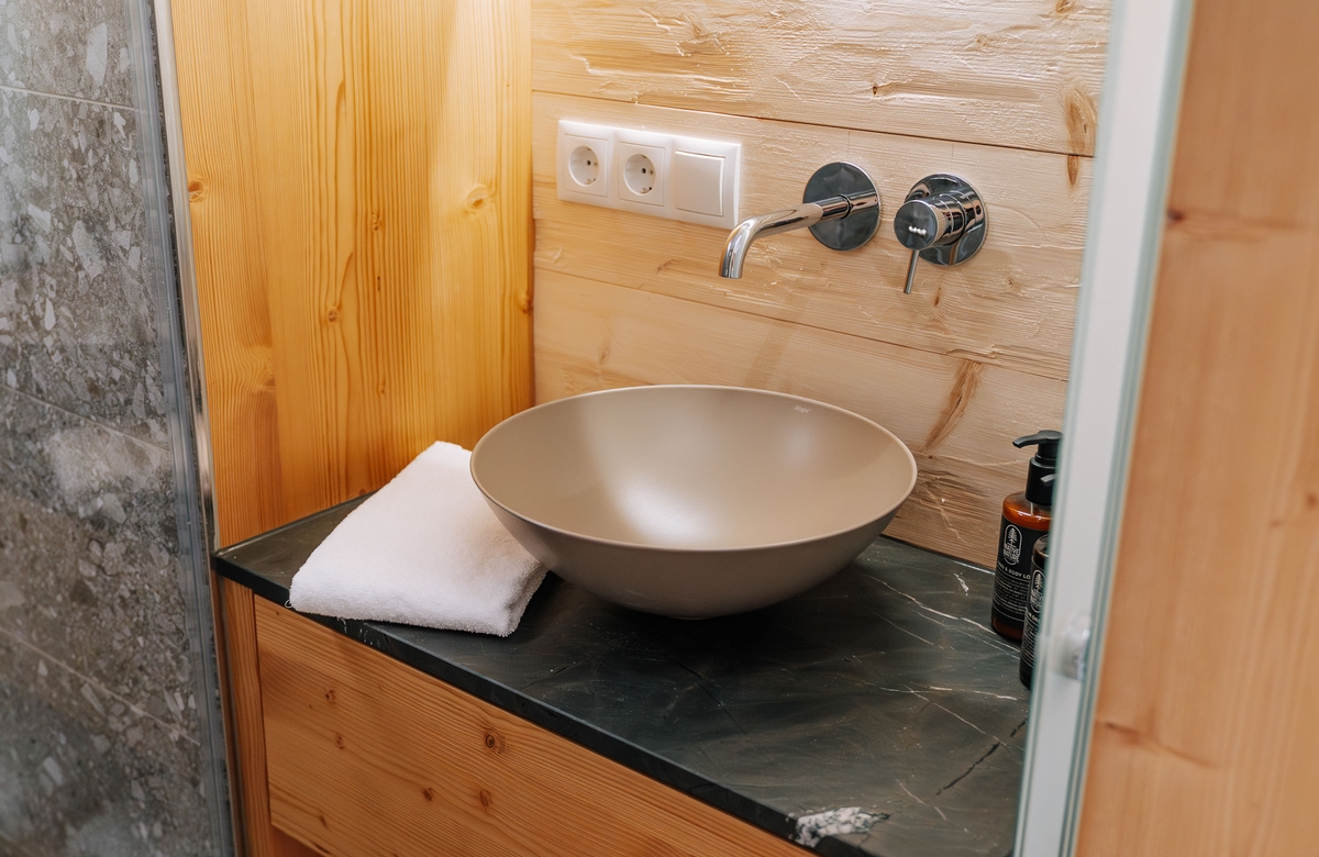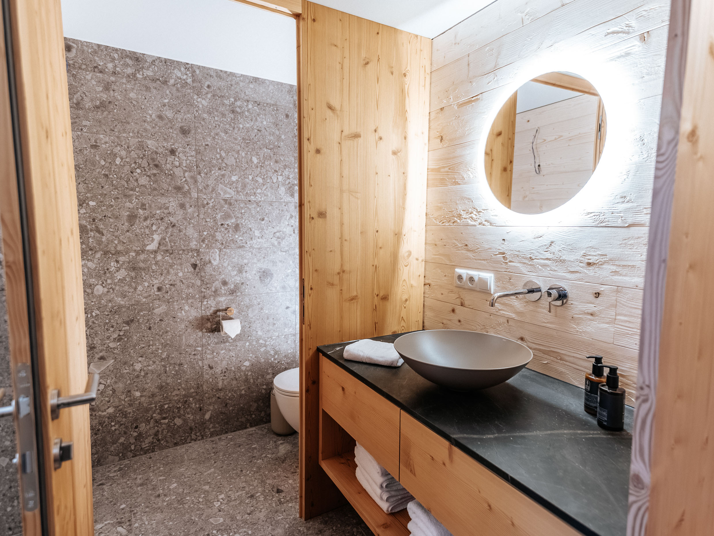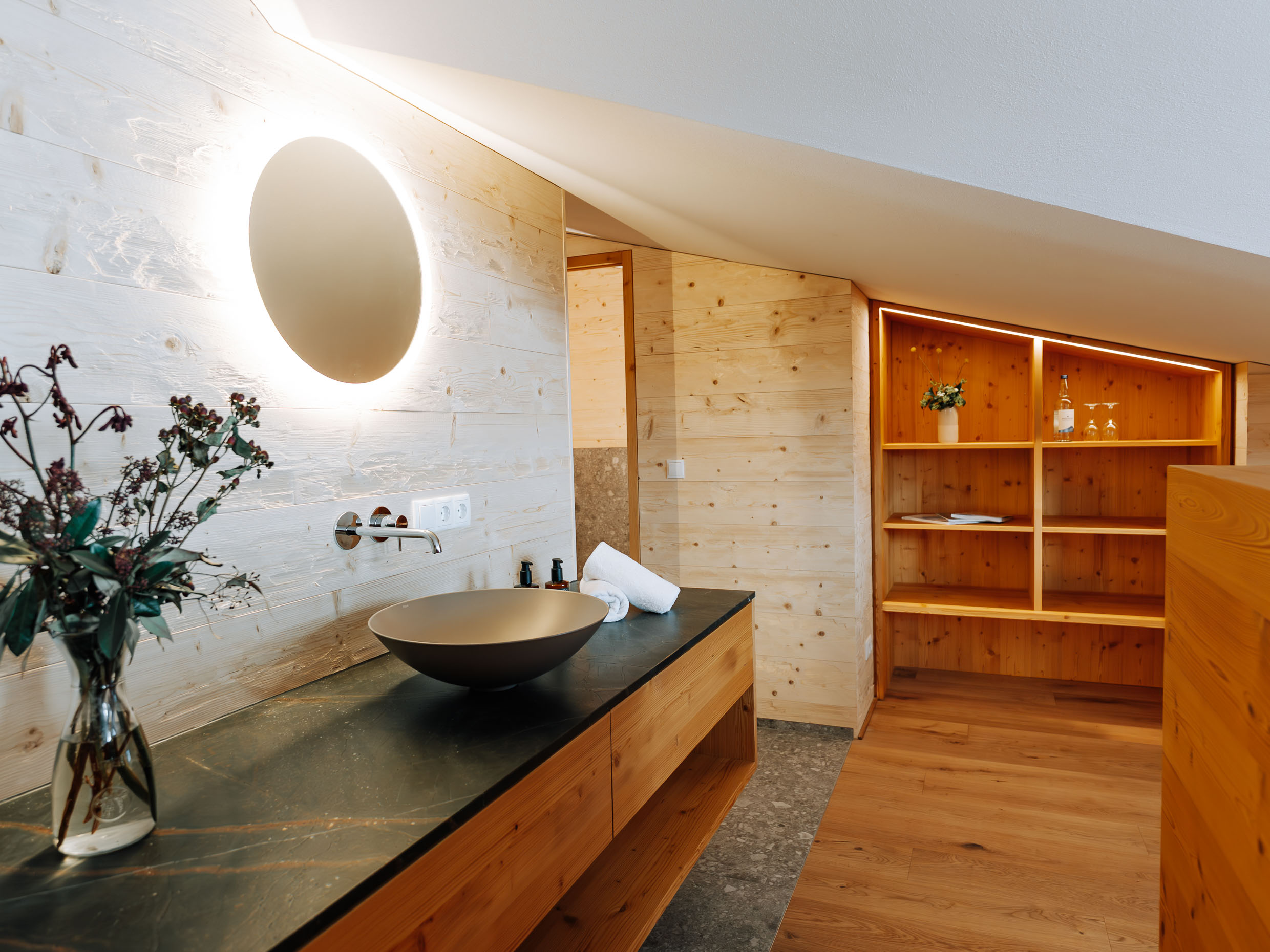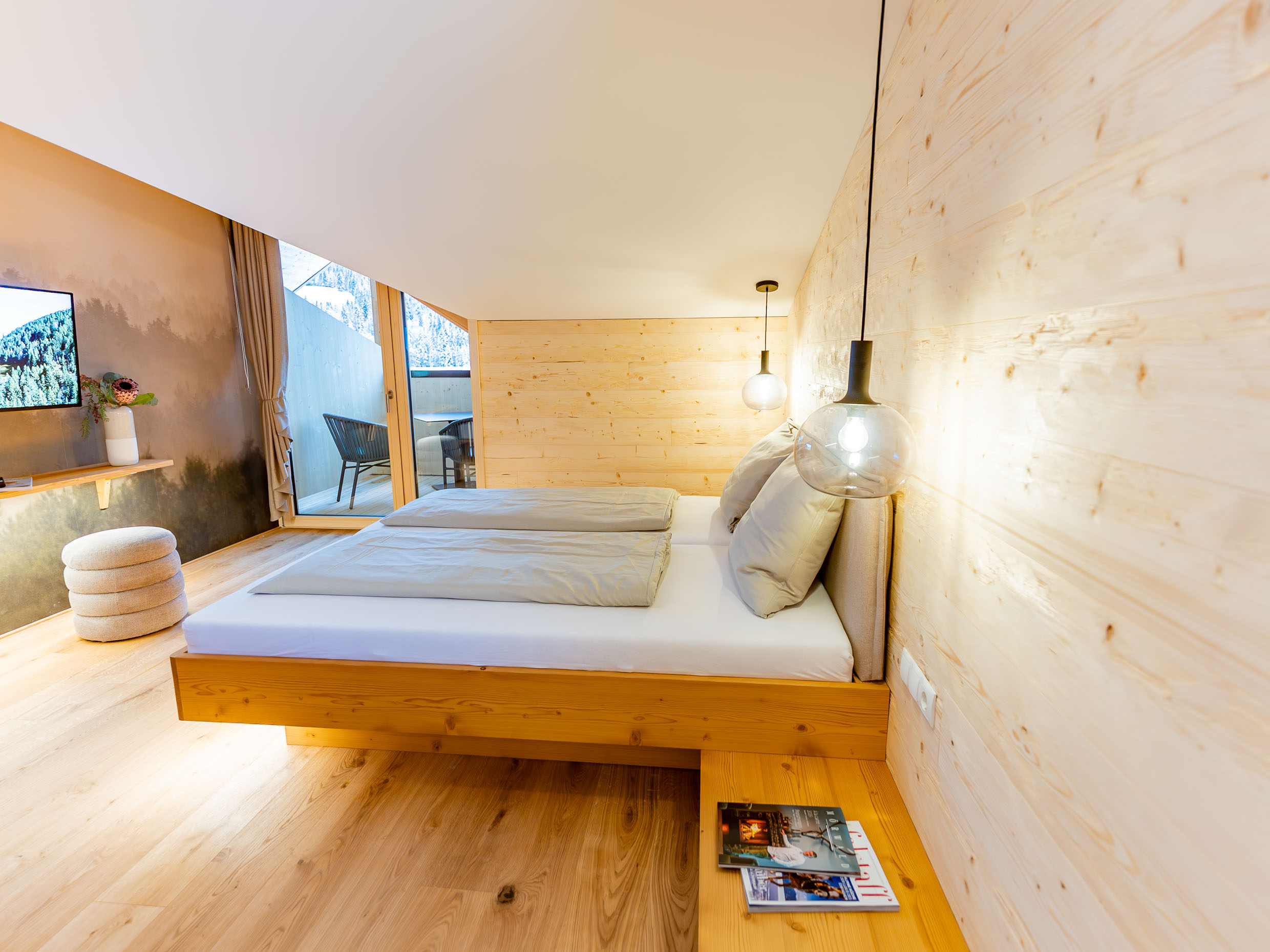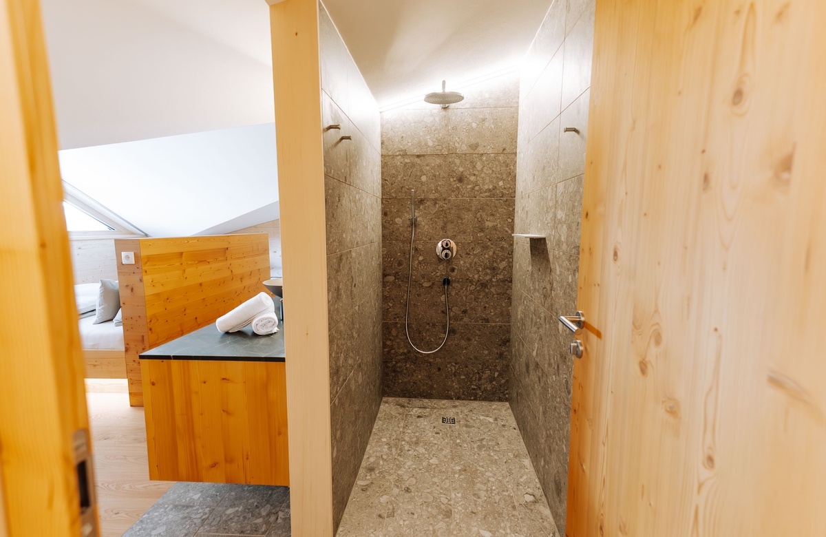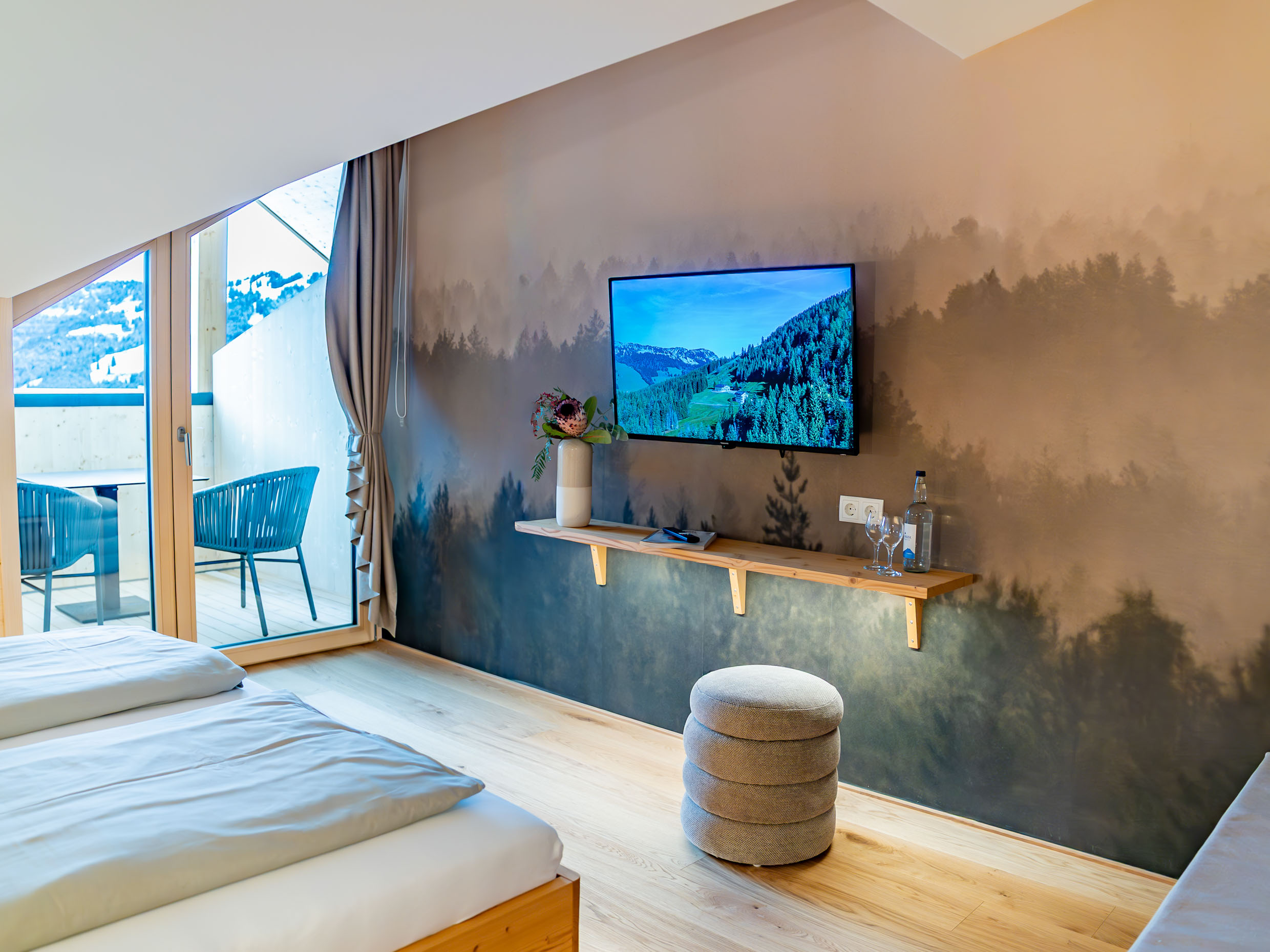 Gestalterisch greifen die Zimmer den klassischen Hüttenstil auf: viel Holz, warme Materialien und eine behagliche Atmosphäre, die das alpine Lebensgefühl von Wald & Wiesn widerspiegelt. Die Hütte ist damit der perfekte Ort für alle, die gerne mittendrin wohnen und das Herz des Hauses bewusst erleben möchten.