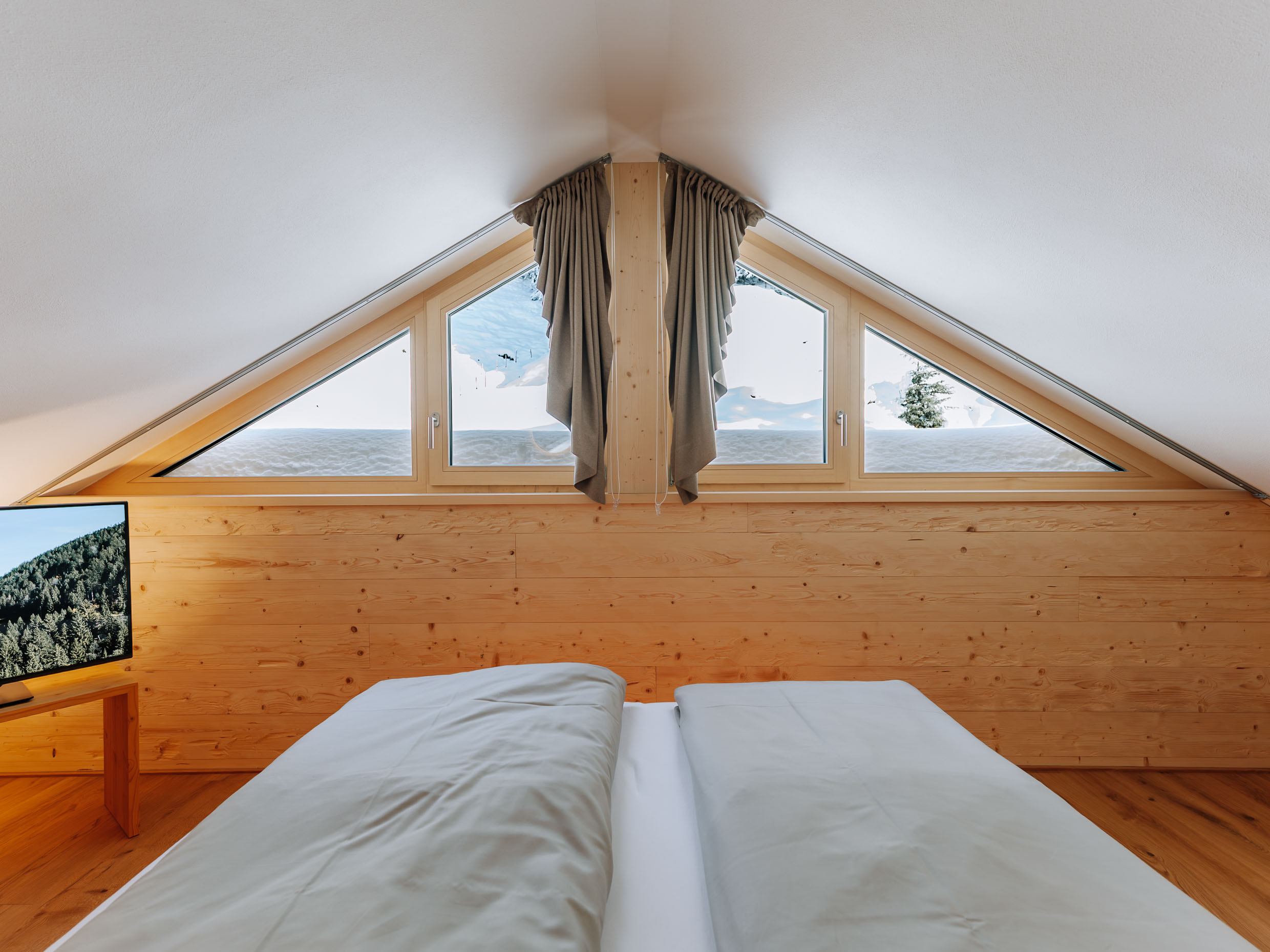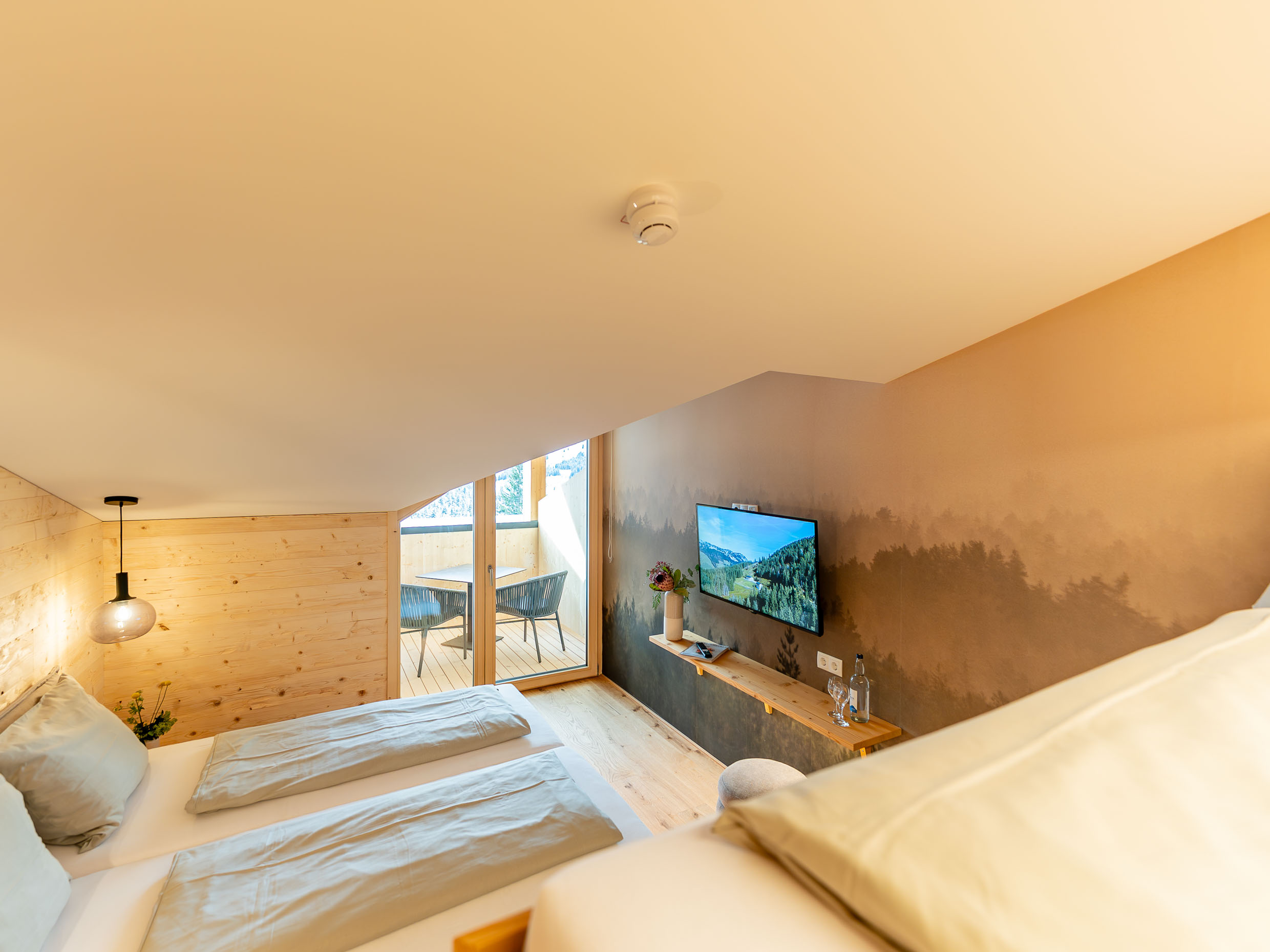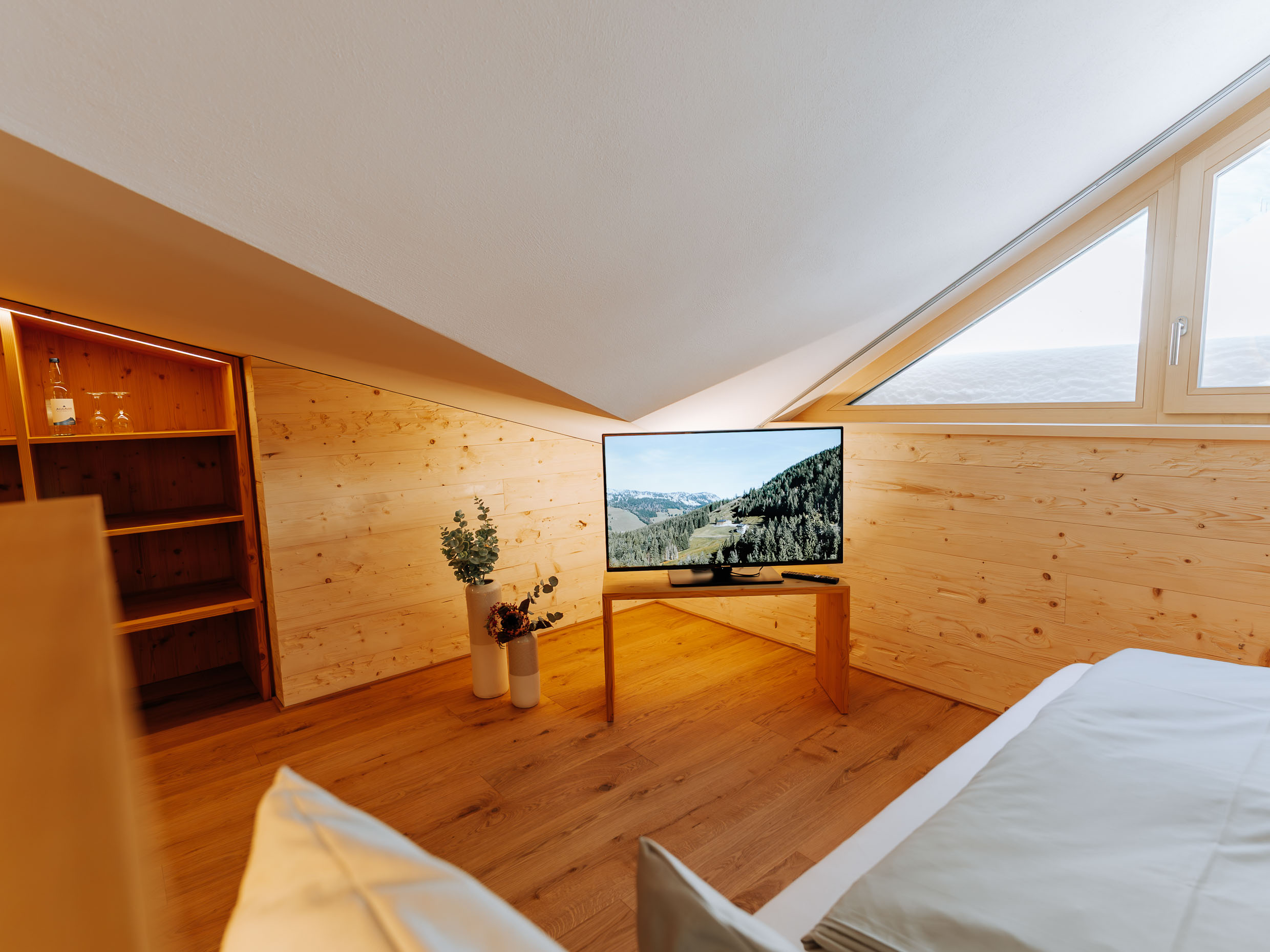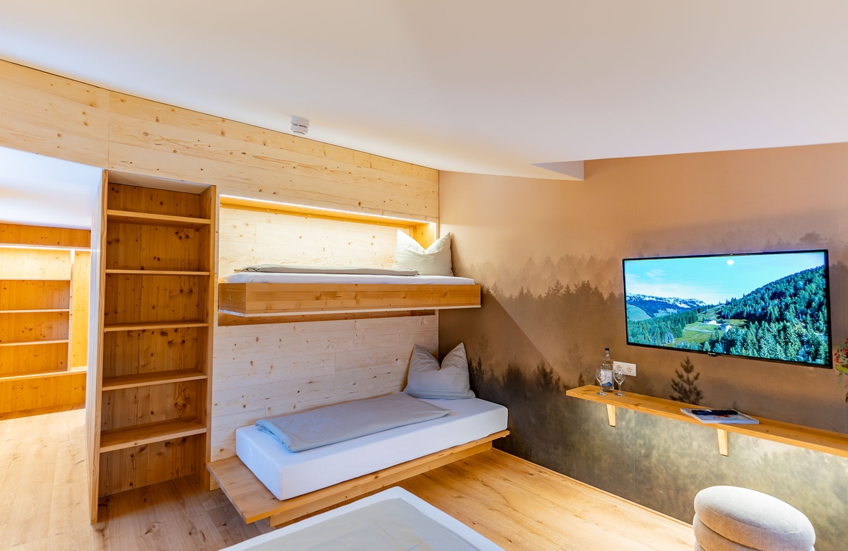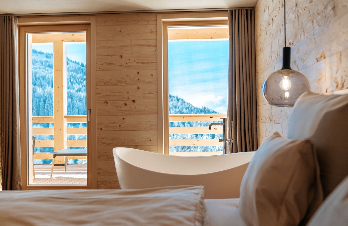 Gestalterisch greifen die Zimmer den klassischen Hüttenstil auf: viel Holz, warme Materialien und eine behagliche Atmosphäre, die das alpine Lebensgefühl von Wald & Wiesn widerspiegelt. Die Hütte ist damit der perfekte Ort für alle, die gerne mittendrin wohnen und das Herz des Hauses bewusst erleben möchten.