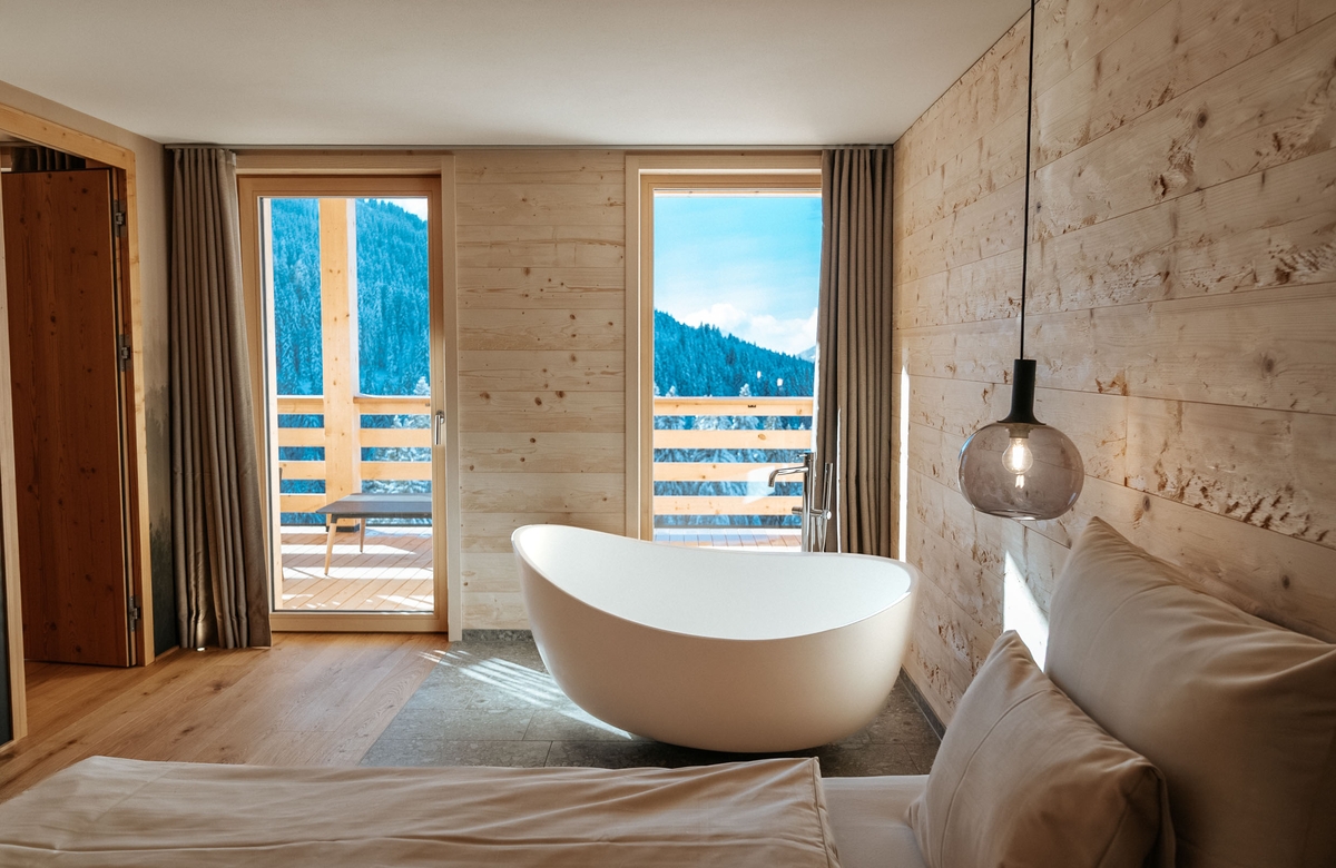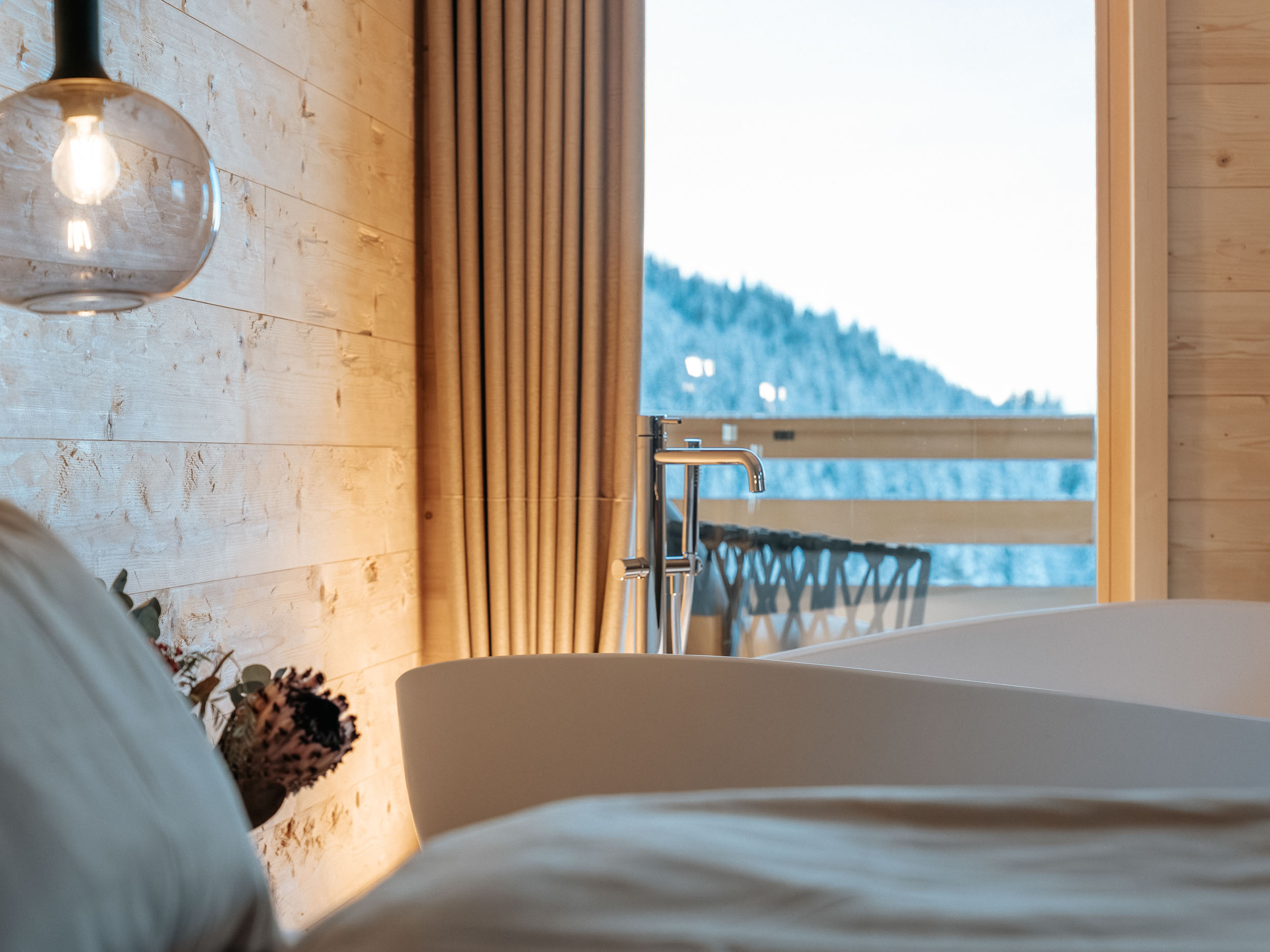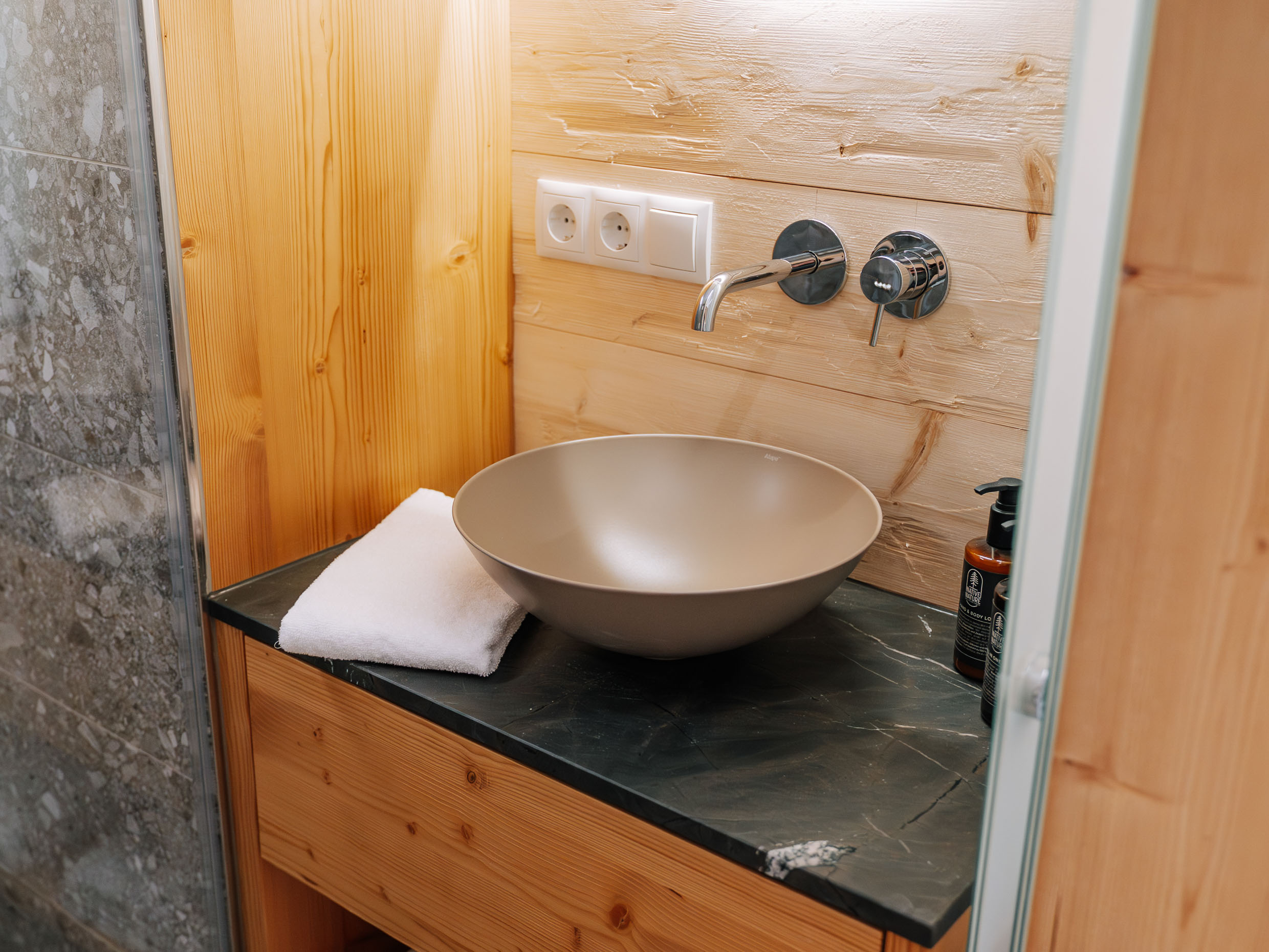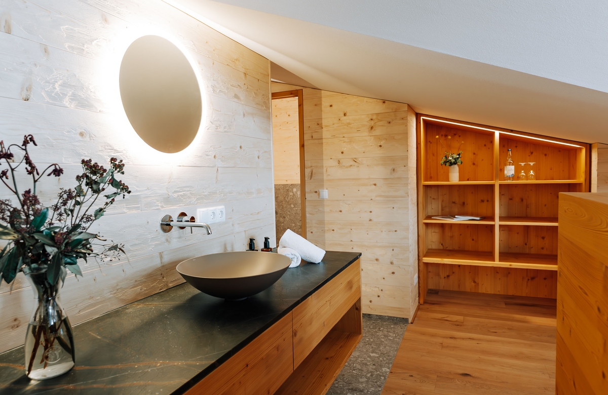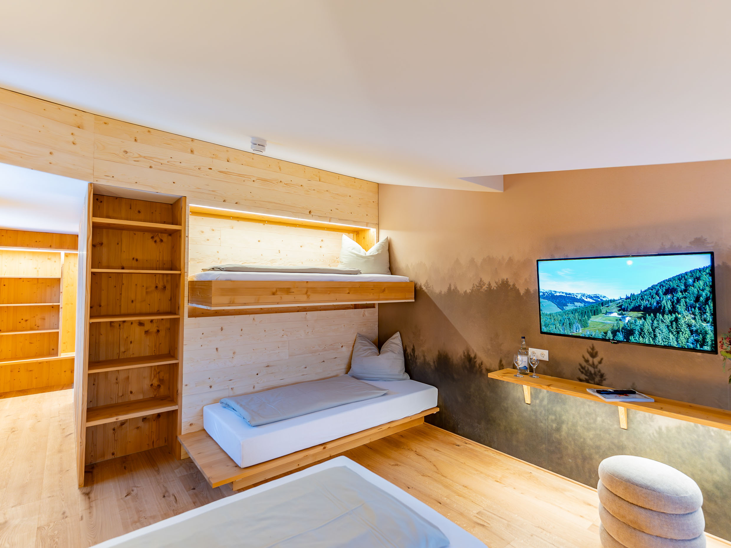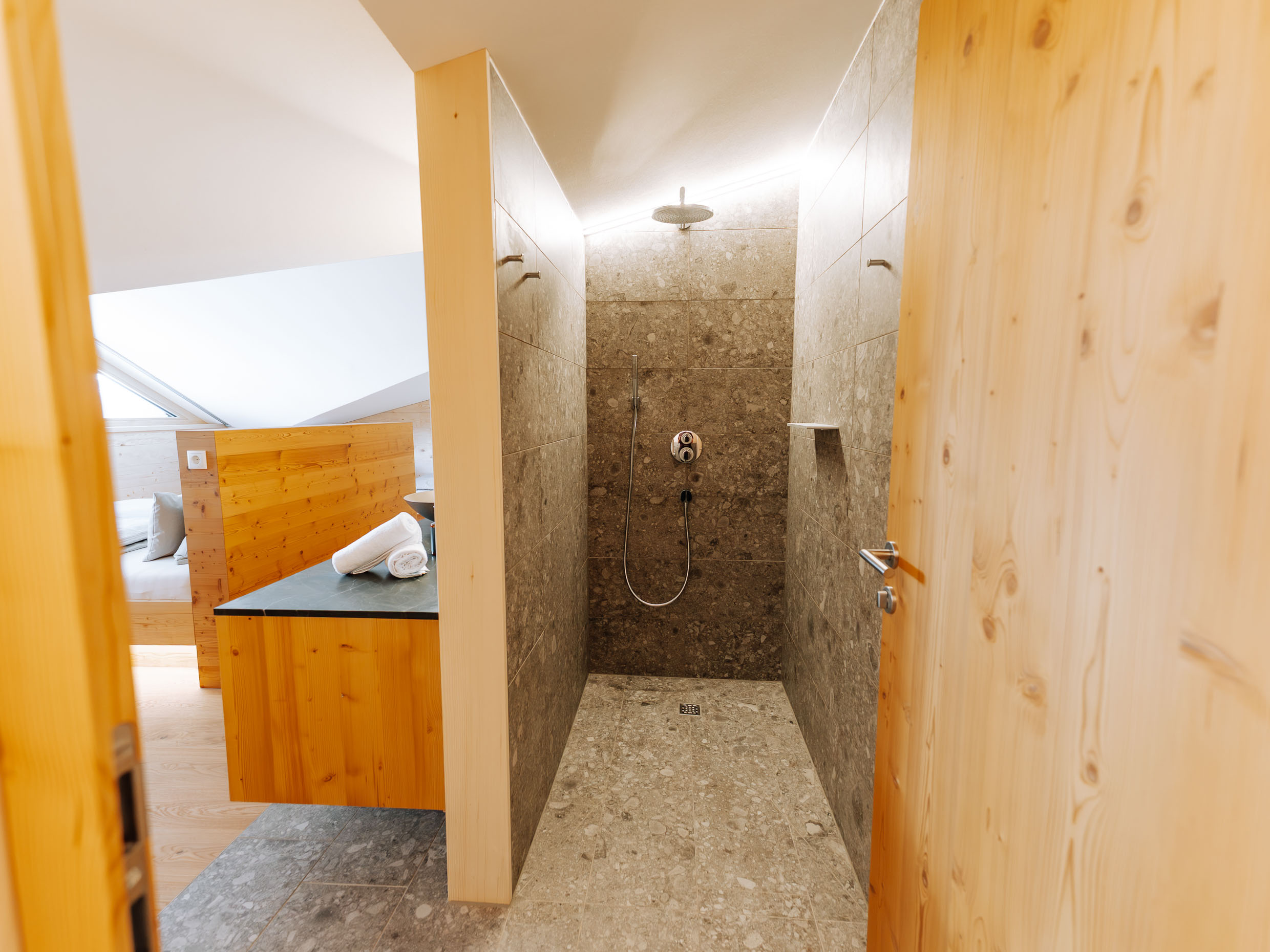 Gestalterisch greifen die Zimmer den klassischen Hüttenstil auf: viel Holz, warme Materialien und eine behagliche Atmosphäre, die das alpine Lebensgefühl von Wald & Wiesn widerspiegelt. Die Hütte ist damit der perfekte Ort für alle, die gerne mittendrin wohnen und das Herz des Hauses bewusst erleben möchten.