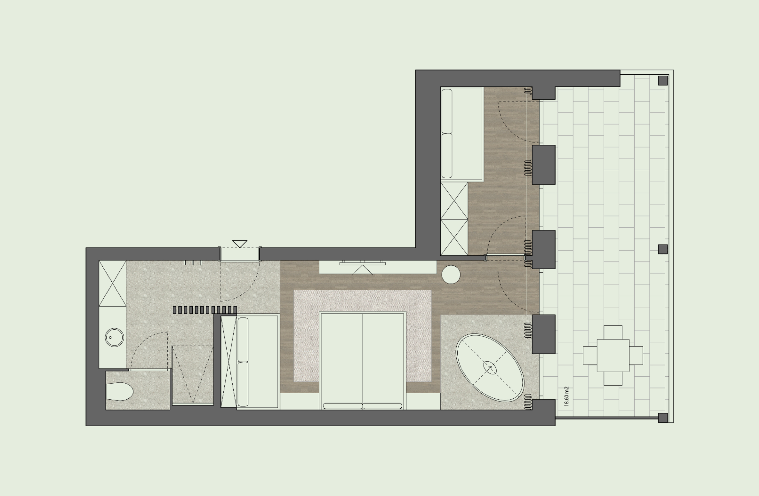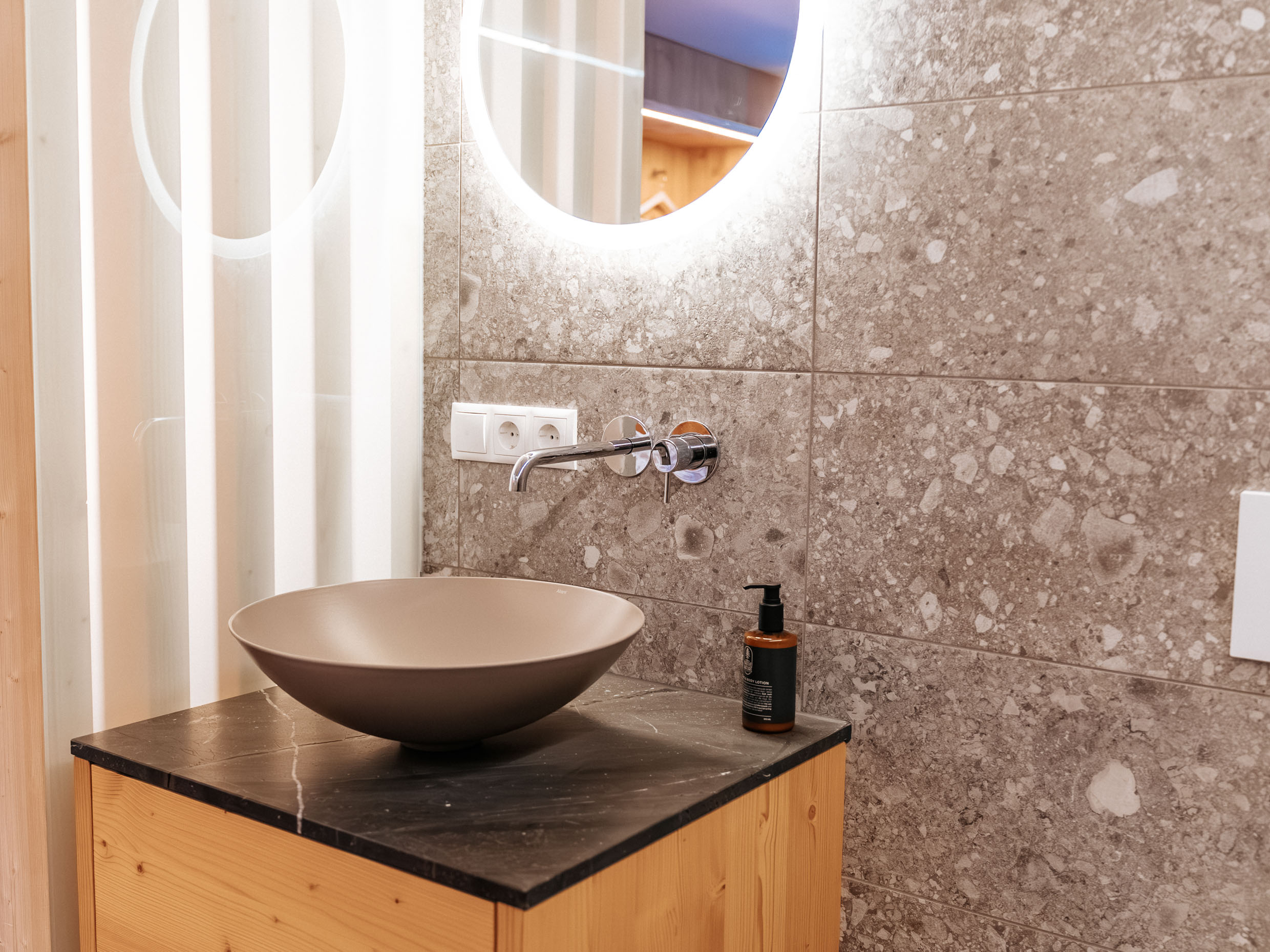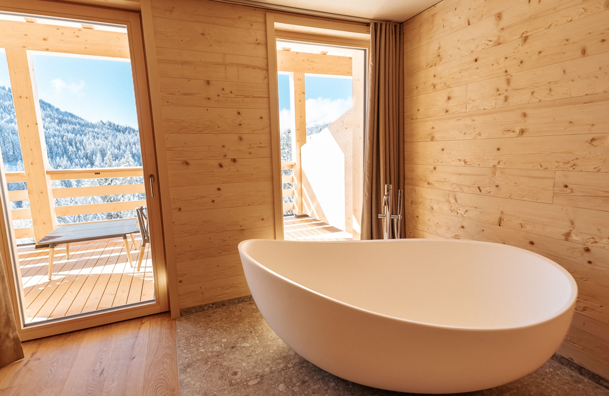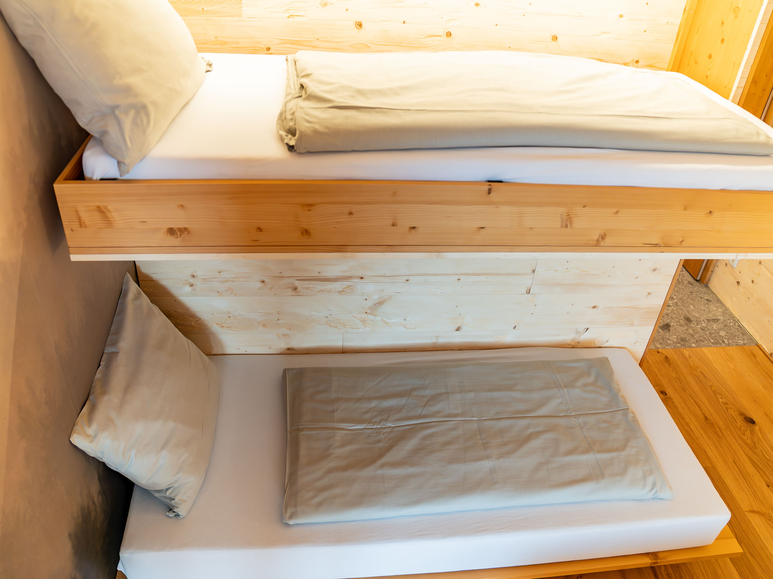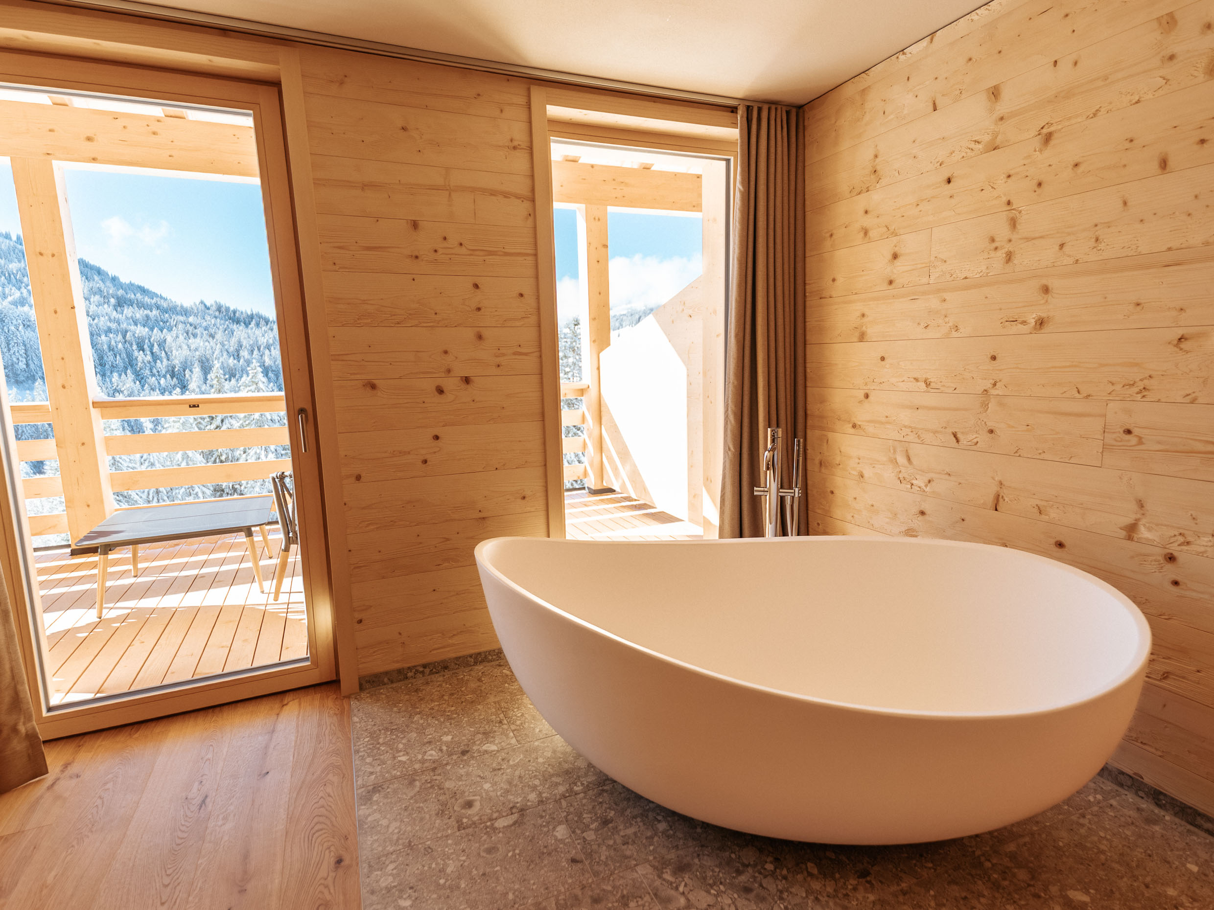 Gestalterisch greifen die Zimmer den klassischen Hüttenstil auf: viel Holz, warme Materialien und eine behagliche Atmosphäre, die das alpine Lebensgefühl von Wald & Wiesn widerspiegelt. Die Hütte ist damit der perfekte Ort für alle, die gerne mittendrin wohnen und das Herz des Hauses bewusst erleben möchten.