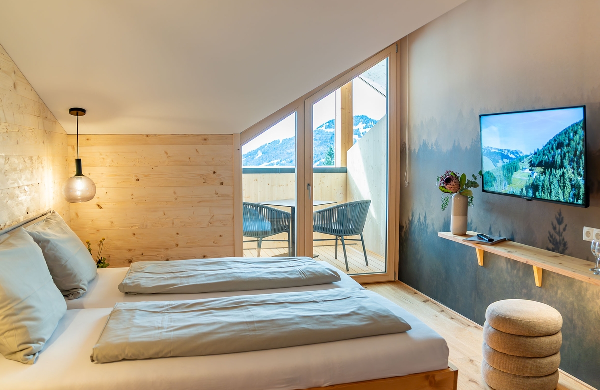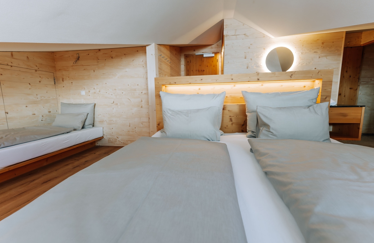 Entdecke unsere Zimmer, Suiten und Familiensuiten im Haupthaus und freue dich auf echte Berghüttenatmosphäre mitten in Balderschwang.