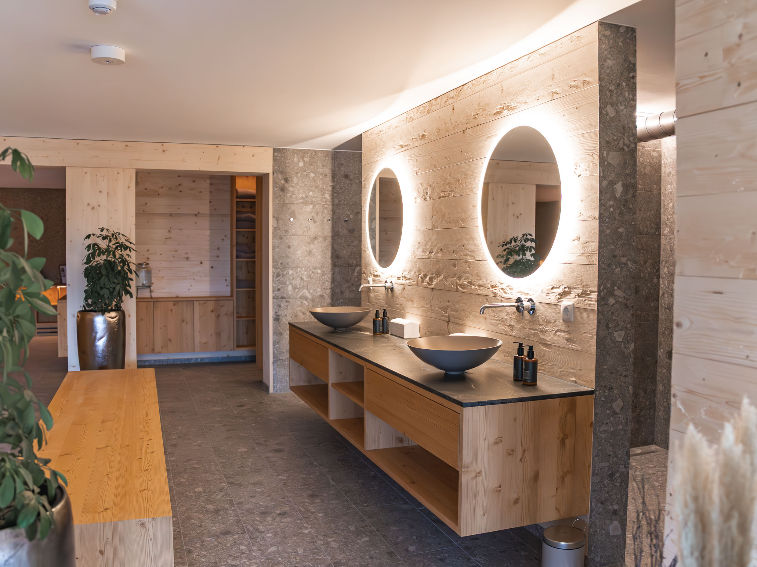 Nur Du, die Bergkulisse und unser kleiner, aber feiner Saunabereich mit Schwimmteich und ganzjährig beheiztem Außen-Whirlpool. Gibt es eine schönere Art zu entspannen? Wohl kaum. Eingebettet ins traumhafte Panorama der Balderschwanger Bergwelt darf der Körper beim Schwitzen erst auf Touren und dann zusammen mit dem Geist zur Ruhe komme.