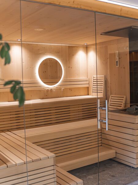 Wer es sanfter mag, entspannt in der Bio-Sauna, umgeben von warmem Naturstein, duftendem Fichtenholz und einer Ruhe, die sofort ankommt.